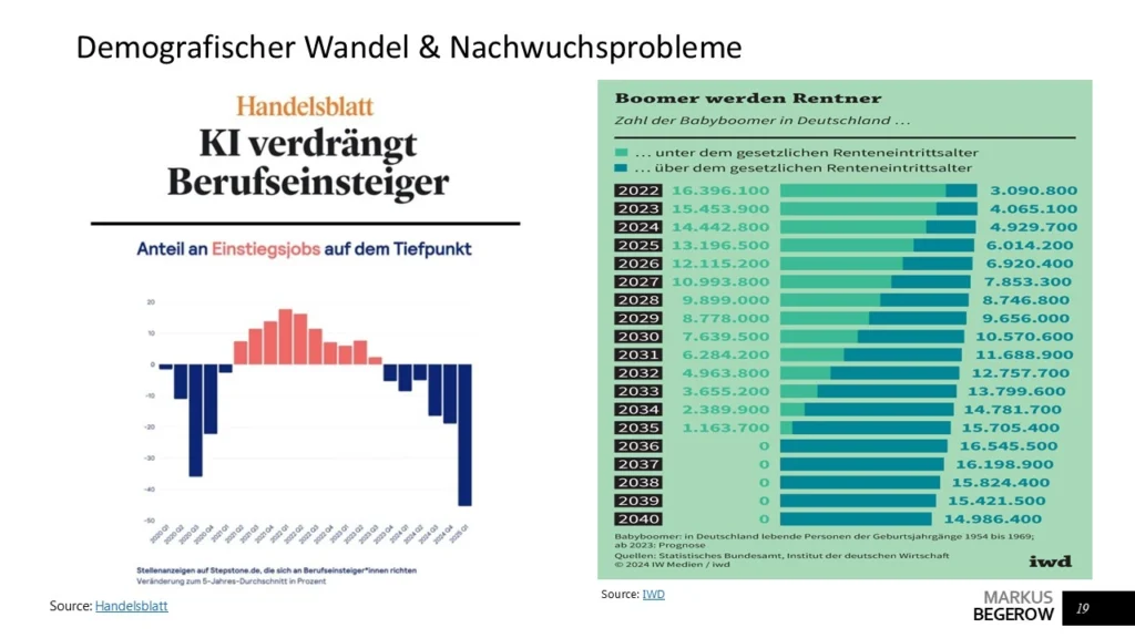 Diese Themen wurden auch in den Daten und Analysen der Präsentation deutlich sichtbar. KI wird häufig als Lösung für genau diese Probleme gesehen. Und ja, sie kann unterstützen. Sie kann Prozesse beschleunigen, Analysen verbessern und Mitarbeitende entlasten.
