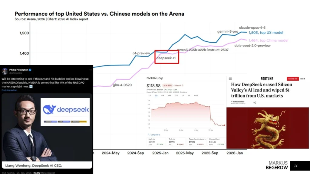 Hinzu kommt ein weiterer Aspekt: Die Leistungsfähigkeit von KI entwickelt sich mittlerweile schneller, als wir sie überhaupt sauber bewerten können. Benchmarks verlieren an Aussagekraft, während Modelle kontinuierlich besser werden. Gleichzeitig bleiben Themen wie Sicherheit, Governance und verantwortungsvoller Einsatz deutlich zurück, teilweise fließt nur ein minimaler Anteil der Ressourcen in diese Bereiche. Das führt zu einer gefährlichen Schieflage: